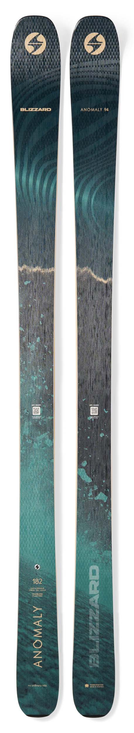 Clicked into this one you get the benefit of not being married to a turn. Instead, the Anomaly 94 nurtures trust by empowering the skier to pivot on top of it with Blizzard unique TrueBlend woodcare. Crowded trails, changing terrain, variable snow, and low light are out of your control. But with this ski underfoot you're in control and can take it all in stride. You can gravitate to groomers, play on the side trails, slice zipper lines in trees, or arc in crud without an ounce of hesitation on the Anomaly 94.