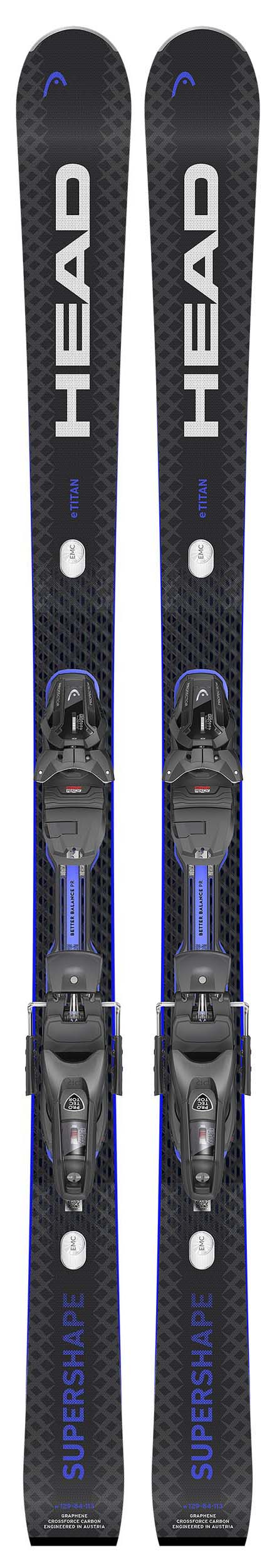 The Supershape e-Titan gets an update with a new shape and construction, resulting in a supercharged carving performance and a confidence boost on the slopes. With a waist width of 84mm and a heritage born from race, the e-Titan can charge in variable snow conditions. Intermediate through expert skiers will find top-notch power transmission and edge grip in both long and short turns thanks to its high-performance construction that includes a Graphene and Crossforce Carbon inlay. A thinner aluminum layer reduces weight and enables easy handling even off-piste. HEAD’s EMC technology reduces vibration for a smooth ride at all speeds. The ski’s unique Better Balance system plate provides a constant ramp angle for all boot sizes, offering optimum balance for skiers.